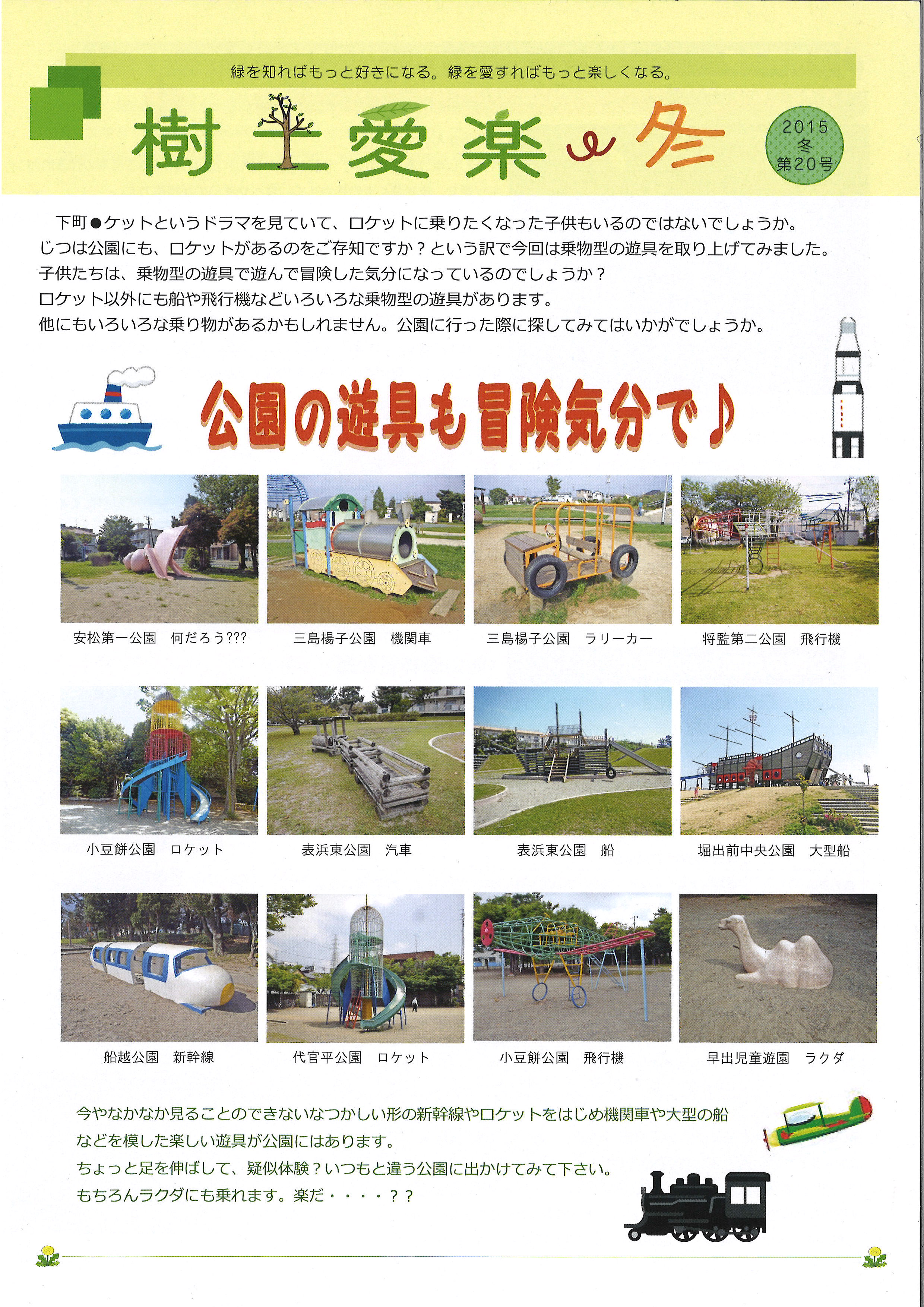 四季折々の花や緑の情報、公園の情報などを掲載した広報紙を発行しています。